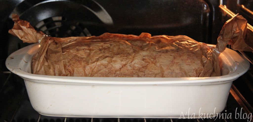 Wstawiamy do piekarnika nagrzanego do 200 st C w naczyniu żaroodpornym na 75 minut.