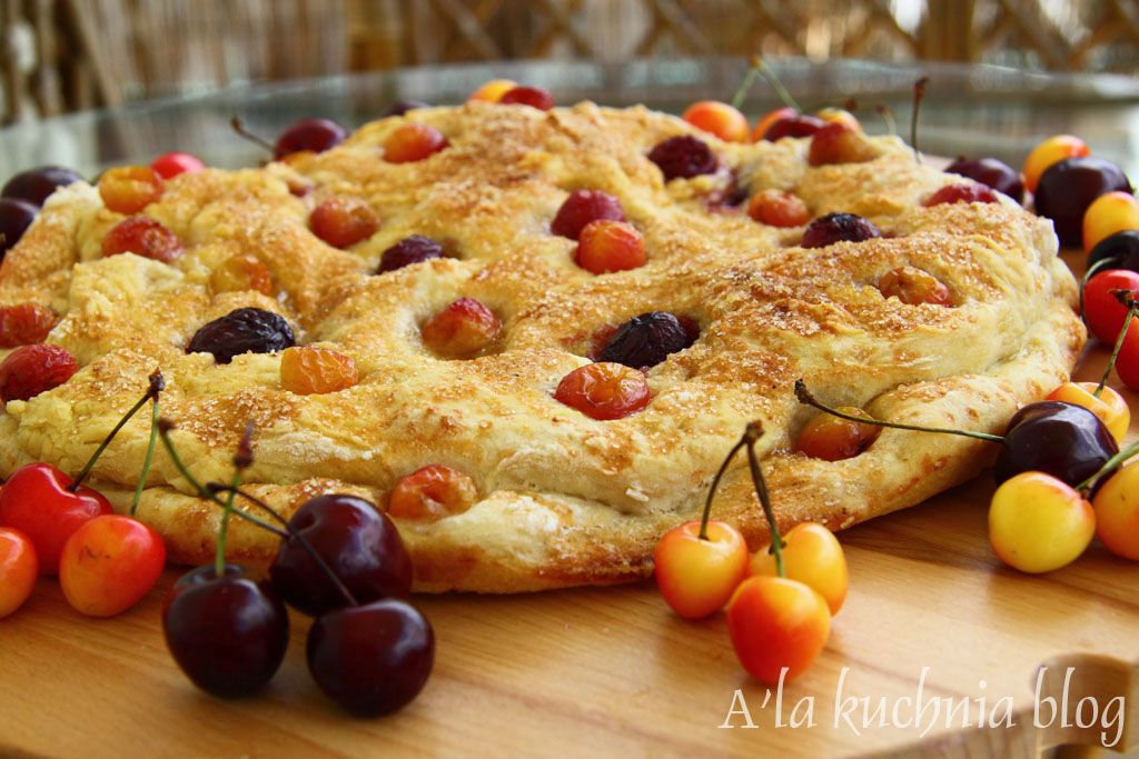 foccacia czereśnie pizza słodka ciasto drożdżowe
