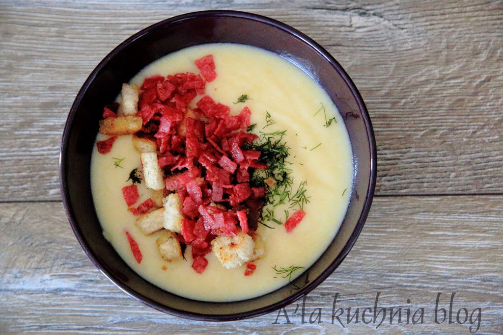 Grzankami, koperkiem i / lub salami posypujemy zupę przed podaniem.